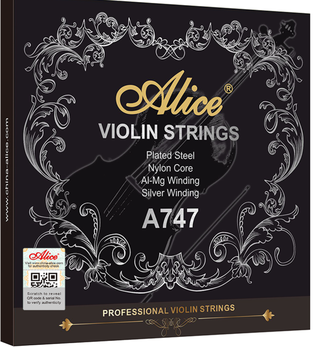 For instance, one of the most popular choices is the Alice Violin String Set A747. This string set carries a synthetic nylon core which is far more stable in its pitch and delivers sophisticated tonal characteristics. Its string windings are made using a selection of Al-Mg alloy and a pure silver G string. This set is perfect for professionals with its impressive performance!