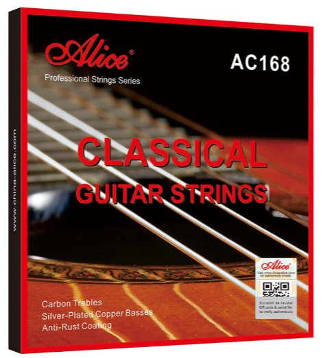 Alice strings AC168 is a high-quality set of classical guitar strings designed to produce a rich and balanced tone. Constructed with silver-plated copper, and the strings core materail is multi-filament nylon. AC168 offers exceptional durability and corrosion resistance while providing excellent sound quality. Suitable for beginners and professional guitarists, the AC168 is ideal for classical music and other genres such as jazz, folk, and pop.