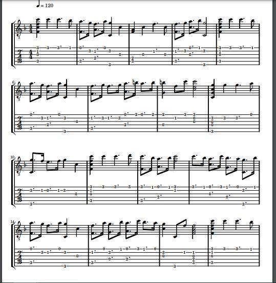 Don’t let the tempo of 120 BMP frighten you here. Trumpet Tune has a strong melody featuring fanfare-like motifs sounding like a trumpet, hence the name. But before you’re in, make sure you know fingerstyle playing well.