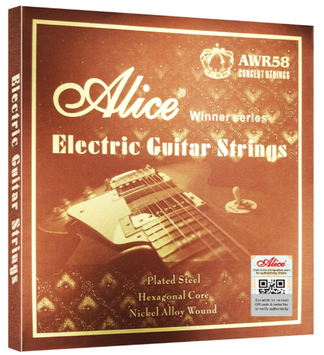 Alicestrings’ AWR58 electric guitar strings are designed with nickel alloy winding and a hexagonal core of high-carbon steel for excellent resonance and clarity. These electric guitar strings have advanced electromagnetic properties, rich harmonics, and long-lasting bass. The AWR58 set offers a medium gauge for electric guitars and concert strings.
