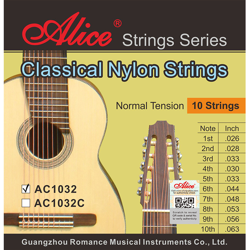 When it comes to getting the ideal tone from a guitar, ALICE knows how important high-quality strings are. And that is why we are pleased to present the AC1032 10-String Classical Guitar String Set, crafted with the demands of 10-string classical musicians in mind.