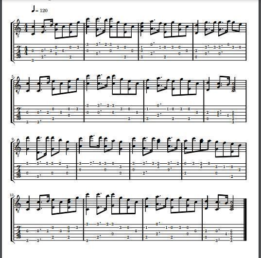 Don’t let the tempo of 120 BMP frighten you here. Trumpet Tune has a strong melody featuring fanfare-like motifs sounding like a trumpet, hence the name. But before you’re in, make sure you know fingerstyle playing well.