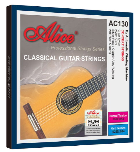 Alicestrings AC130 is a set of high-quality classical guitar strings with excellent tone and durability. These strings use advanced manufacturing techniques and high-grade materials to ensure consistent performance and long-lasting playability. The AC130 set features clear nylon trebles and silver-plated copper wound basses, providing a balanced, warm tone with excellent projection.